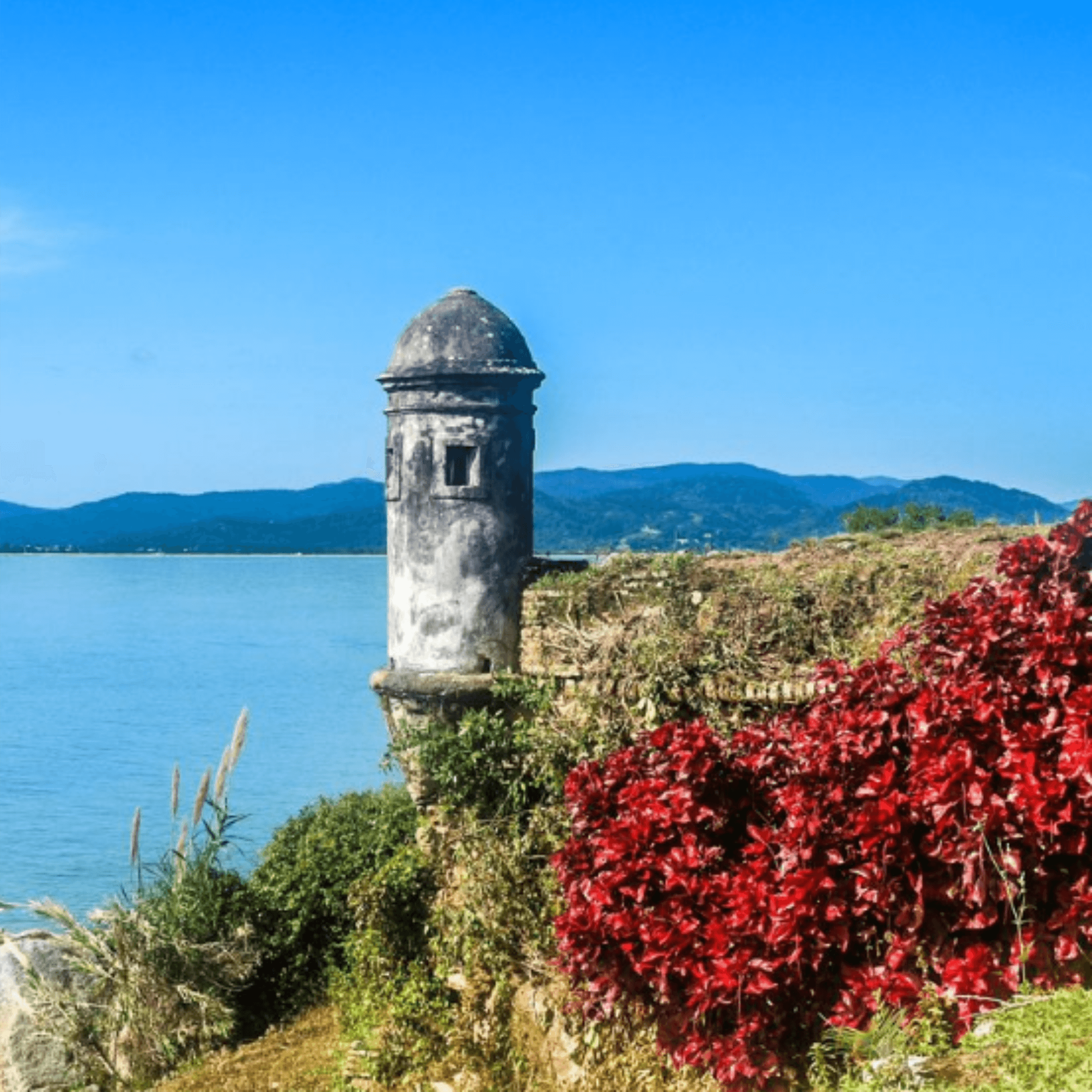 A Fortaleza está localizada na Ilha de Anhatomirim